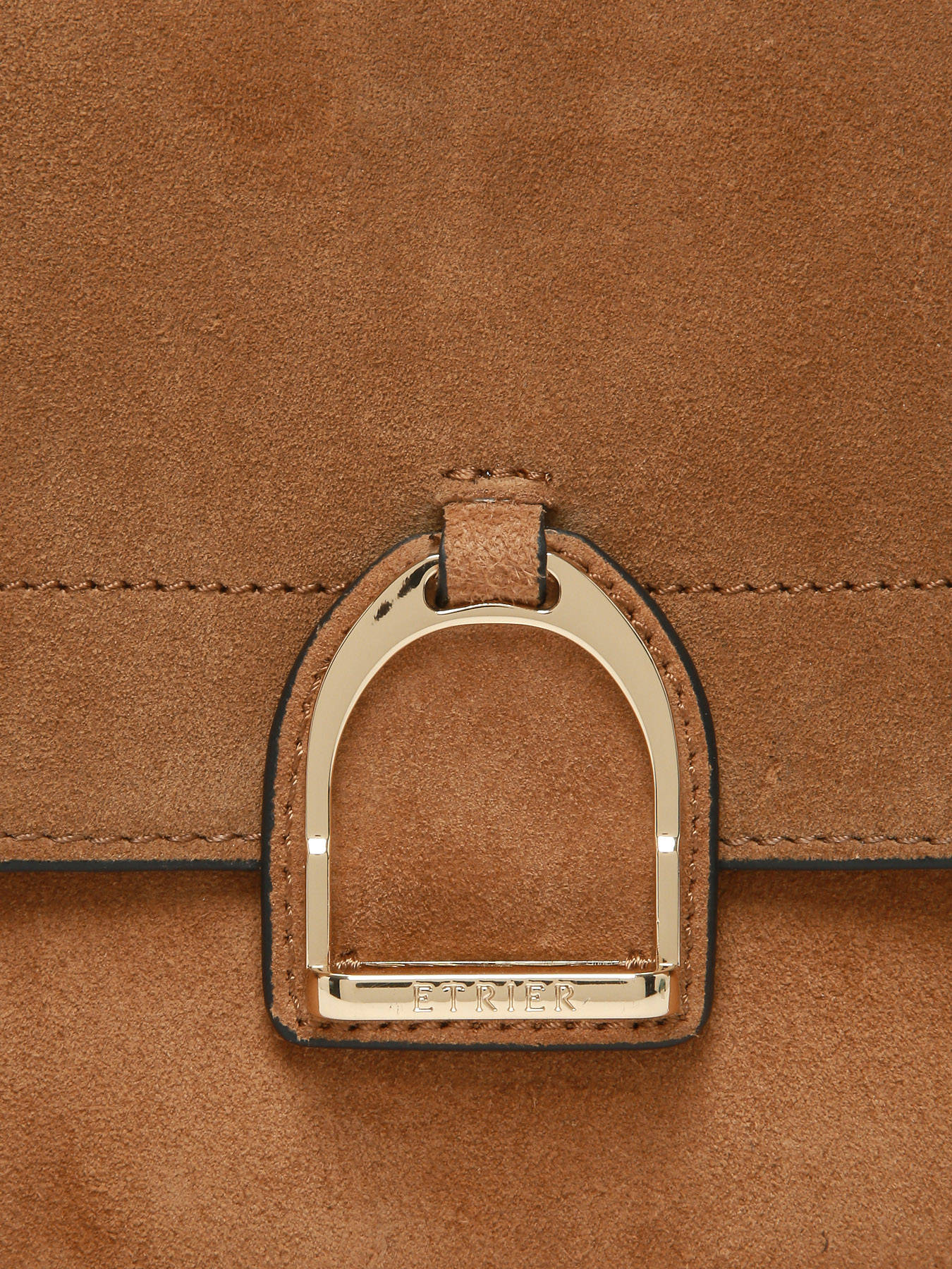 The ETRIER crossbody bag from the ALTESSE SUEDE line comes in its model M, the largest size. This new winter edition of our iconic line features velvety leather with a soft, warm touch, blending timeless elegance with a ""Highlander Cowboy"" spirit. The back of the bag is made of grained leather, providing better durability. It features a magnetic flap adorned with the gold-tone Etrier emblem, a small handle for a refined handheld carry, and an adjustable, removable strap for versatile styling.